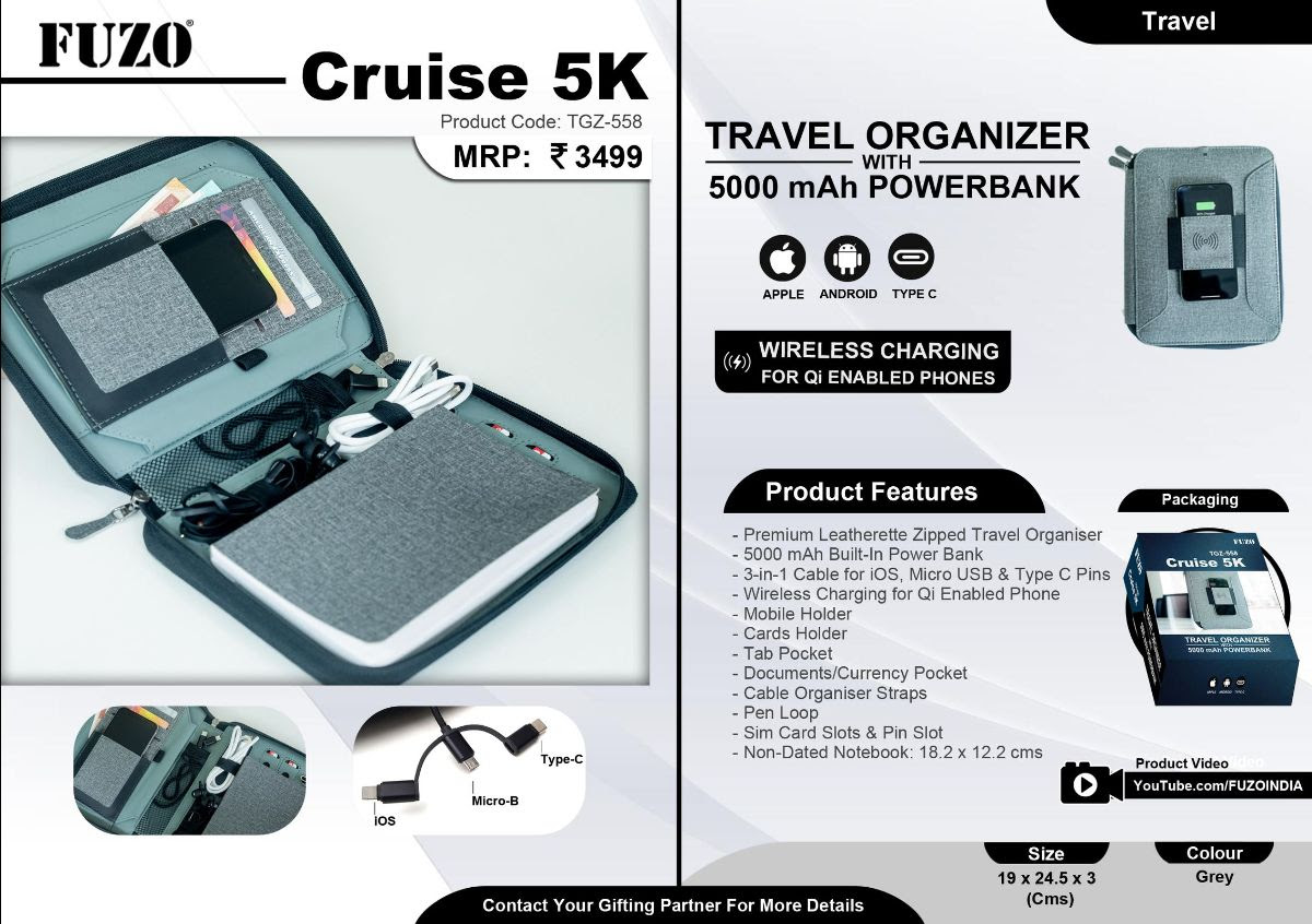 Travel Organiser with 5000 mAH Powerbank & Wireless Charging: TGZ 558